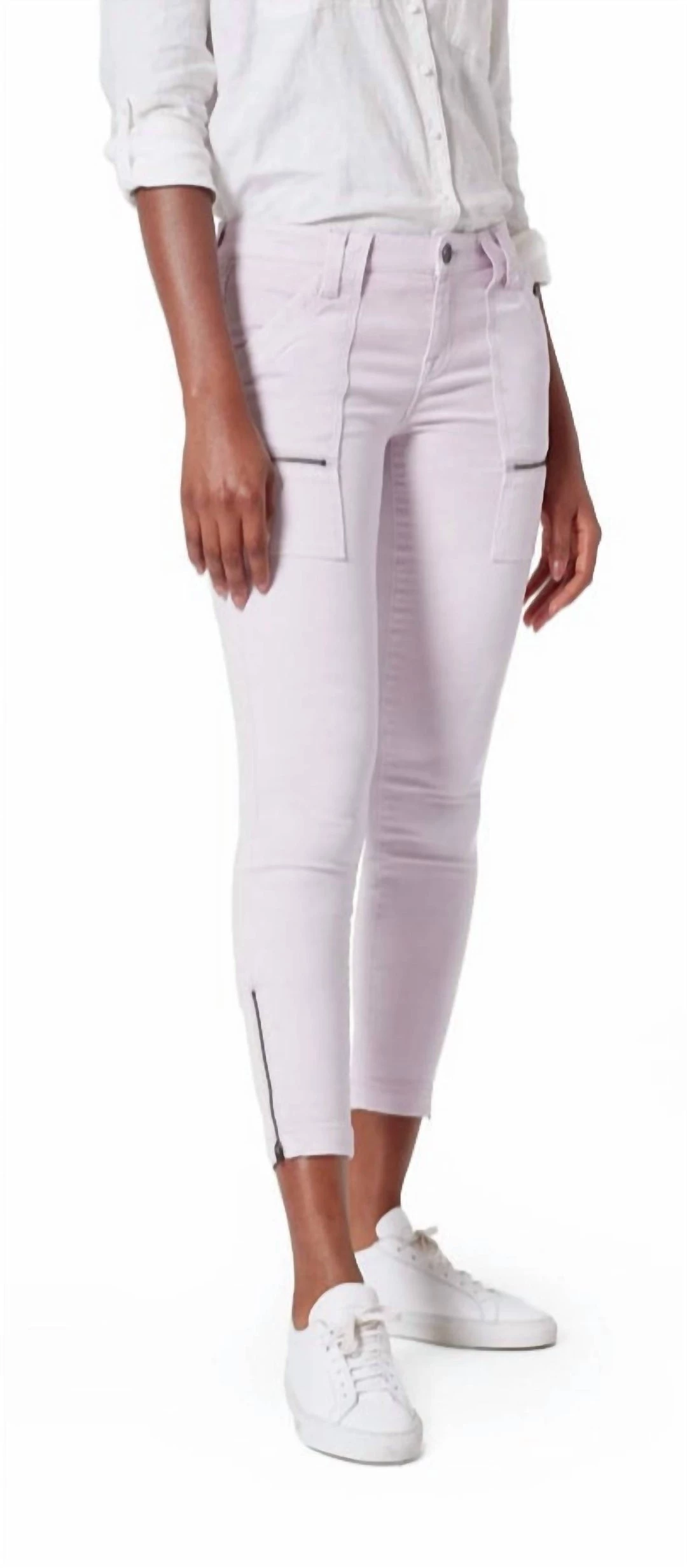 Our new favorite utility pant, our Park Skinny jean features oversized front pockets and zipper detailing throughout, cropped ankle length with zip cuffs, and back flap patch pockets.