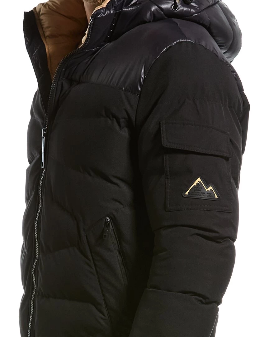 - Design Details – Quilted Mixed Media Design, Stand Collar, Hooded Back, Two Front Zippered Pockets, Left Sleeve Pocket, Ribbed Inner Cuffs And Plush Sherpa Lining