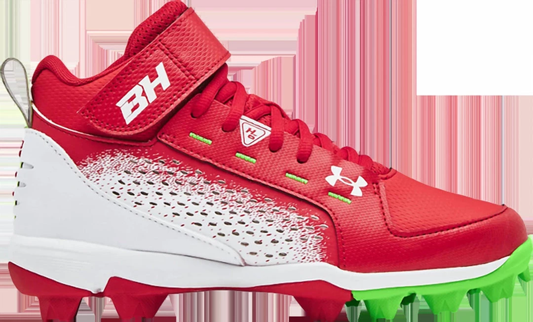 Under Armour Men’S Harper 6 Mid Rm Baseball Shoe in Red/Hyper Green