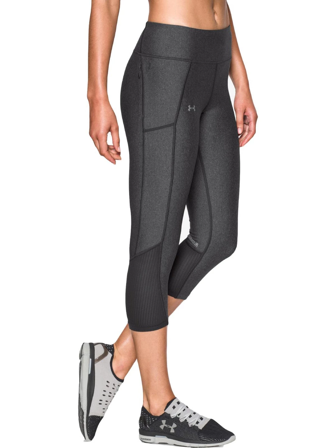 Stay active in the Fly By activewear capri leggings by Under Armour. Made with 87% polyester and 13% elastane. These sleek leggings are crafted with sweat wicking technology and a hugging compression style fit. They feature mesh inset details and a capri style cut. Pair them with your favorite sports bra for the studio or rock them with a tank on your morning run. Logo detail. Pull on. These leggings are guaranteed authentic.