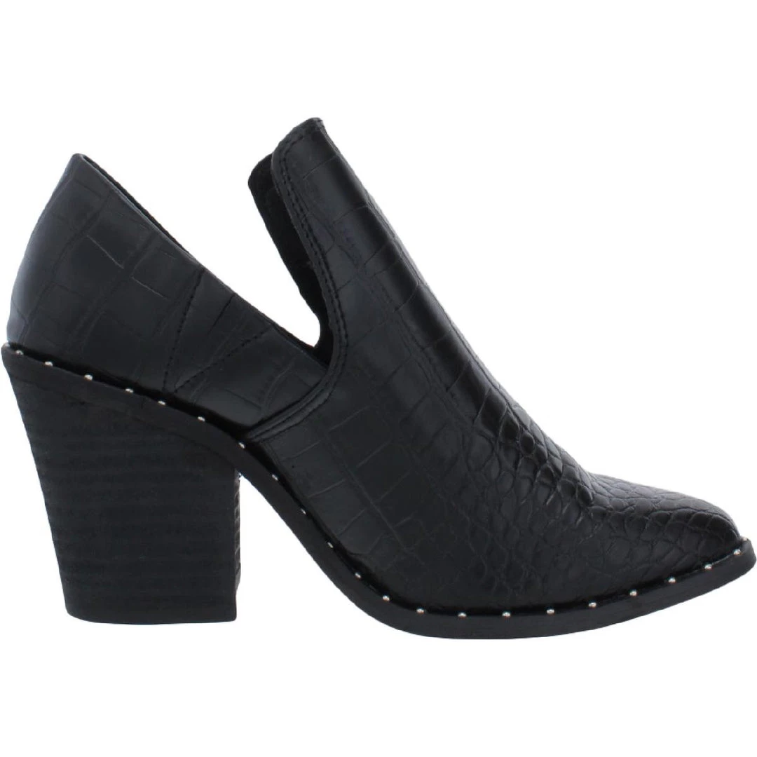 Elevate your look in the Deavan snake print ankle booties by Very G. Faux leather uppers with a V-Cut construction. The bold snake print and stacked heel offer effortless everyday style. Padded footbed for comfort and support. Made with synthetic outsoles