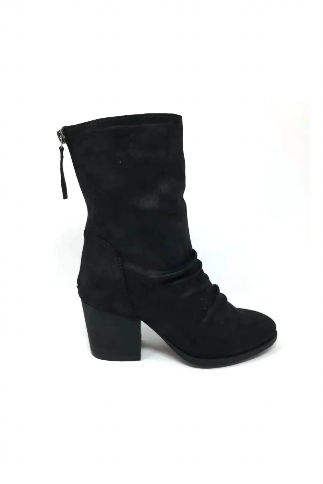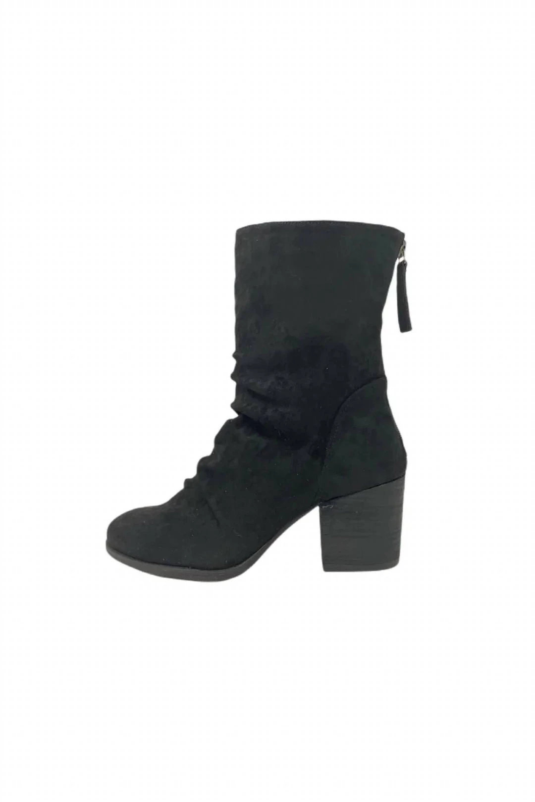 Slouchy Front. Mid-Calf Shaft Height. Zipper Heel. 2.5″ Stacked Heel
