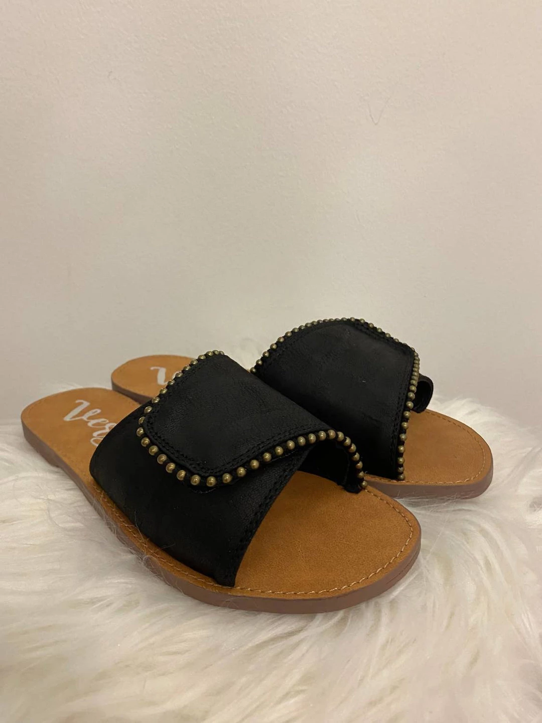 The Ritzy Sandal is a great classic sandal with a gold spotted touch. It has an adjustable velcro strap for an easy to wear look that’s perfect for your outings!