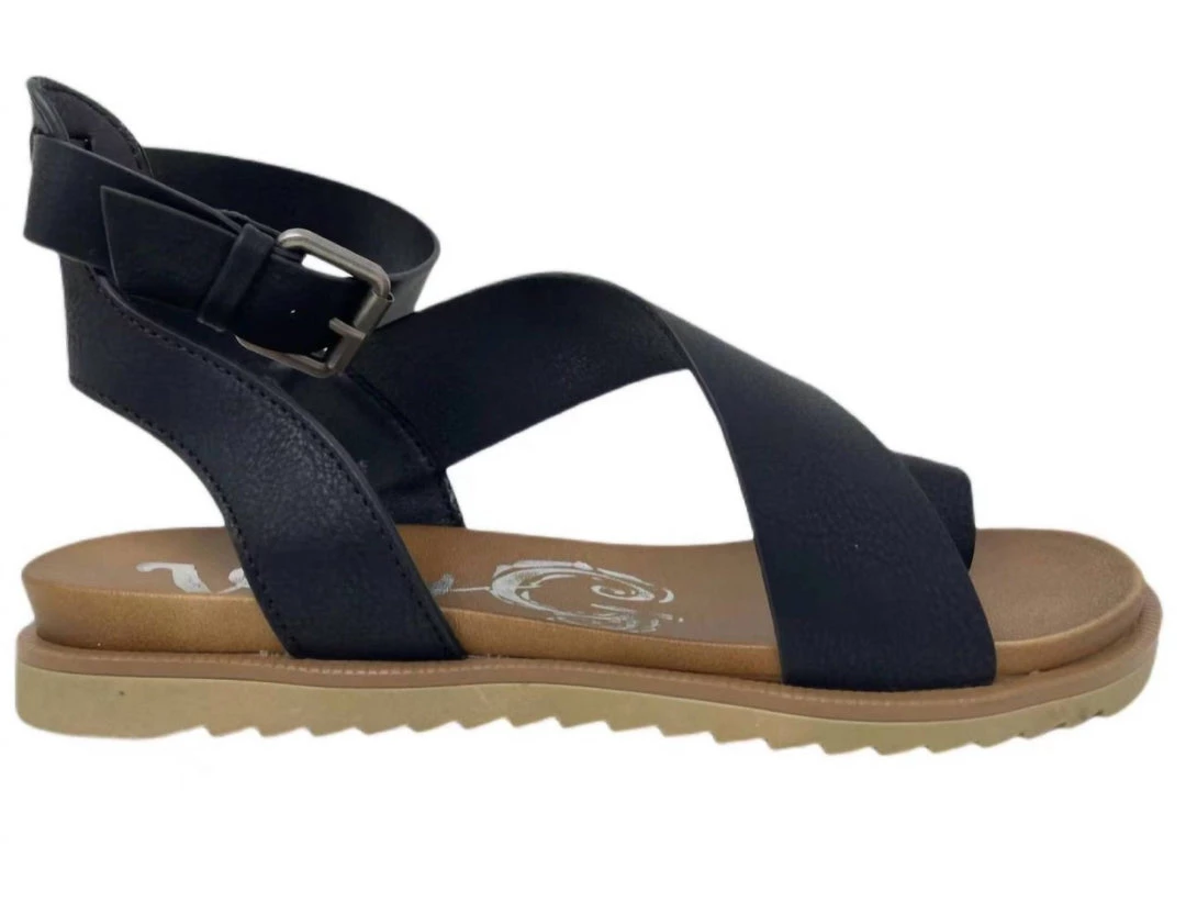 Very G black strap sandalbuckle on strap for adjustment and rubber sole bottom for comfort